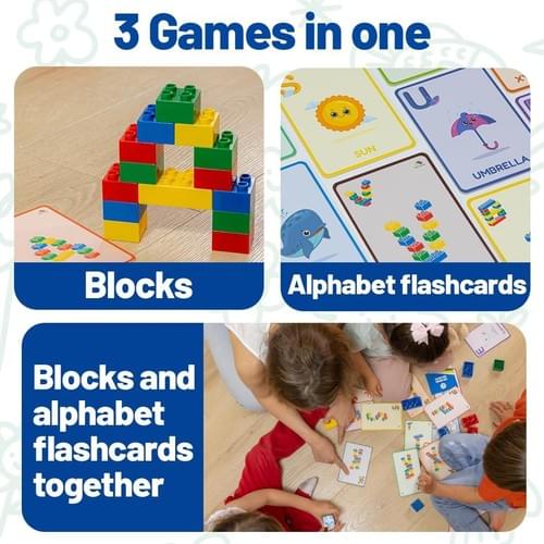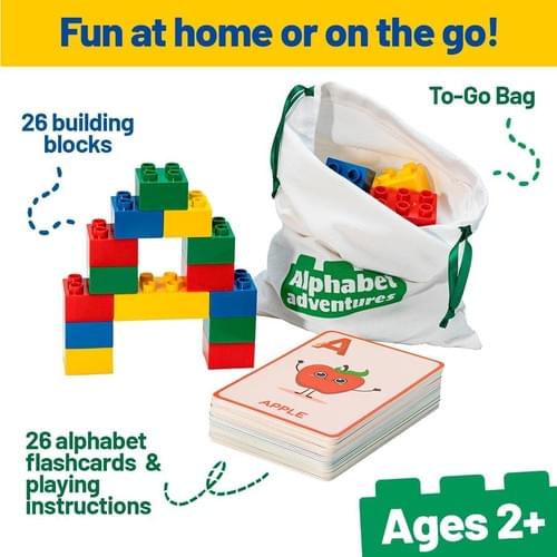 26 building blocks 26 alphabet flash cards &playing instructions To-Go Bag